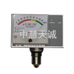 产品简介: 板表上配红、黄、绿三种颜色的强度指示,当紫外线强度在70%-100之间时,指针指在绿色强度正常工作范围; 当紫外线强度在50%-70%之间时,指针指在黄色强度警告工作范围; 当紫外线强度在50%以下时,指针指在红色报警工作范围,同时报警状态有一对继电器干接点输出。 主要特点: 1.紫外线传感器: 采用紫外光电二极管,对紫外线210-380nm波段辐照强度进行检测。 2.分体式:传感器、控制器、板表分离。 3.安装:传感器探头采用螺纹连接方式,板表(80×64mm)采用两颗螺钉固定在电控箱面板上;控制器采用安装在导轨上。 4.调试:调节W3电位器,使IN和GND间电压输出为5±1% V。 5.维修:当数显表显示在50%及以下时,提醒紫外线强度不足,需要清洗玻管、探头或者换灯管。 规格参数: 工作电压:AC220V±10%; 显示强度:相对强度; 显示精度:0.1%; 探头储存温度范围:-55℃~+125℃; 探头工作温度范围:-55℃~+70℃; 探头螺纹尺寸:M26×2mm(可根据客户要求定制)。 现场安装: 运行:安装好仪器和强度监测仪探头,并接通进、出水路,然后接通灯管电源,待灯管工作稳定后(15-20分钟)再进行调节。 显示调节:调节峰值电位器W3,使指针指在100刻度。 报警调节:拧下探头,然后逐渐移动探头,当指针指在50%刻度时,调节W2电位器。