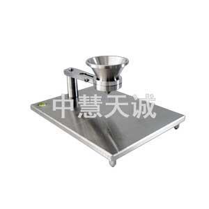 产品简介: 该产品用于检测氧化铝及类似粉体物料流动性物理指标,测定范围:30°~50°。 部件组成 仪器主件: 不锈钢底盘:长240-260mm,宽190-210mm,底部三个高度调节螺丝。 不锈钢立杆:下为正方20×20,高230;上为圆形φ14×330。 铝合金平底容器:内径72.5±0.1mm,内高72.5±0.1mm,漏口的直径是4±0.1mm,漏口的壁和根部的厚度为4.5±0.1mm,容积为300mL。 铝合金接料盘:外径170mm,外高28mm,内径适配平底容器上面。 不锈钢平底容器固定架:与平底容器适配,尾部不锈钢蝴蝶螺帽固定。 不锈钢调速漏斗:直径65±5mm,平底漏口径5.5±0.5mm,总长度110mm。漏管颈长50mm。 不锈钢调速漏斗固定架:与调速漏斗适配,尾部不锈钢螺丝固定。 不锈钢填充漏斗:直径110±10mm,平底漏口径10±2mm。 不锈钢填充漏斗固定架:与添充漏斗适配,尾部不锈钢螺丝固定。 聚四氟乙烯倾角杯,容积不小于400毫升。 仪器附件: 水平仪 宝塔形高度量规:规高75mm,顶径15mm,底径78mm 聚四氟乙烯漏口塞:塞堵4×10mm 塑料直尺:200mm 量角器:180度 刷子 不锈钢松料钩:3-4mm 扳手 规格参数: 环境温度:15-25℃ 相对湿度:<70% 实验室处于气流和振动条件自然恒定的情况。 安放在通风柜内 本产品按照GB/T 6609.31《氧化铝化学分析方法和物理性能测定方法流动角的测定》的要求。 本产品对平底容器采用旋转法转移试料。 仪器的安装、使用方法 仪器安装: 将仪器底盘长的方向与试验台边沿垂直,正对操作者,距边沿距离以方便操作者操作为准。用水平仪测试底盘是否水平,底盘下三底脚上下可调节高度,并以六角螺帽紧固。 用扳手将上圆下方的立杆固定在底盘上,立杆中间圆孔正对底盘长的方向,并用量角器进行校正,确定下面正方与地盘正方互相平行。 将平底容器固定架丝头端,插入立杆圆孔中,放上平垫,用蝴蝶螺帽稍微紧固。将平底容器放在固定架上,并旋动大部螺丝,再将接料盘套在平底容器上,继续旋紧螺丝,使平底容器上口高于接料盘数毫米。取下接料盘,将水平仪放在平底容器上口,调整蝴蝶螺帽,使平底容器左右水平;如前后不水平,可调节底盘靠近操作者的单个底脚螺丝使之水平,并以六角螺帽紧固。 将可调节流速漏斗旋紧螺丝定位在固定架上,固定架套在立杆上。将宝塔形量规放在平底容器上并保持同心,调整漏斗下端与宝塔形量规顶接触,保持同心位置,其误差小与2mm。再用扳手紧固固定架尾部的螺丝,然后移去宝塔形量规。 将填充漏斗旋紧螺丝定位在固定架上,将固定架套在立杆上,用直尺调整好填充漏斗下端插入调节流速漏斗上沿之下约10毫米,再用扳手紧固固定架尾部的螺丝。 使用方法: 将接料盘套在平底容器上,并用聚四氟乙烯漏口塞堵紧漏口。 将试料注入填充漏斗中,保持可调节流速漏斗不断料,连续注入平底容器之中。当注满平底容器并形成锥体后,继续注入的试料会流淌进入接料盘,停止添加试料。用塑料直尺,性从平底容器上沿将多余试料刮入接料盘中,用扁刷轻轻将接料盘内沿上端残料扫入接料盘,然后将接料盘轻轻从平底容器上移开。 用镊子插入聚四氟乙烯漏口塞柄孔中,从平底容器底部轻轻拔去,试料自然流淌至已称重的聚四氟乙烯倾角杯中。试料流淌完毕后,小心用聚四氟乙烯漏口塞堵紧漏口。称量试料加聚四氟乙烯倾角杯的重量。 松开紧固平底容器固定架的蝴蝶螺帽,旋转平底容器180度,将平底容器内剩余试料,转移至聚四氟乙烯倾角杯中,再称量总重。 按GB/T 6609.31《氧化铝化学分析方法和物理性能测定方法流动角的测定》方法计算流动角。